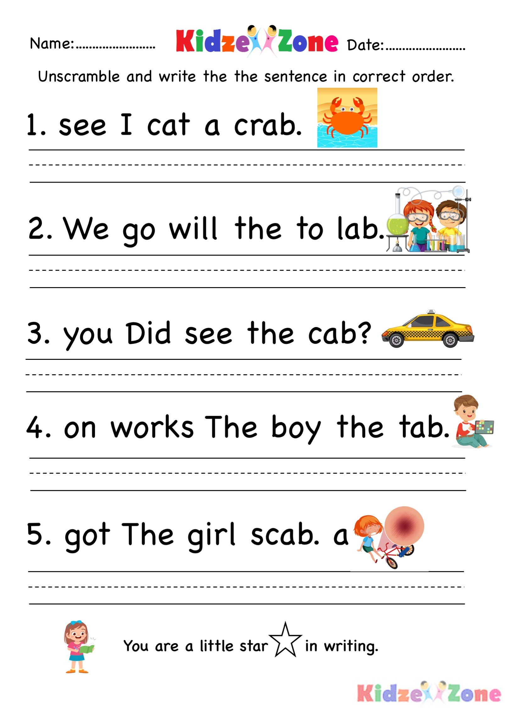 Unscramble the words and write the correct sentence. Unscramble worksheets help children with reading skills. Encourage students to Unscramble the letters to create and write the correct word. Unscramble worksheets are great learning activities that help students with word recognition, word formation, correct word spellings, and expand word vocabulary.